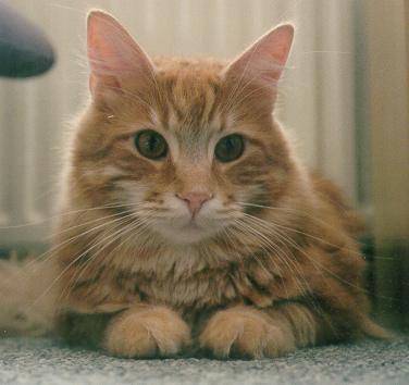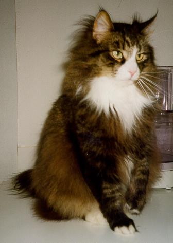 Koen's real name is Charming Coon's Firelight. He's a Maine Coon, born on the 25th of December, 1996. Yes, he is a Christmas baby. Unfortunately he passed away in November 1998 due to some clots in his urine tract.
